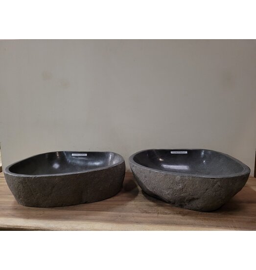 Dieses Stein-Waschbecken-Set aus Flussstein trägt die Nummer FL21543 und wiegt ungefähr 35/38 kg pro Becken. Die Maße dieser Waschbecken betragen ca. 52x47x15 cm.