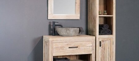 Machen Sie Ihr Badezimmer zu einem Ort, an dem Sie sich entspannen und Zeit für sich selbst nehmen können. Damit Sie sich rundum wohlfühlen, empfehlen wir Ihnen unsere recycelten Teakholz-Badezimmermöbel. Das natürliche Material Teak sorgt für eine angenehme Atmosphäre und lässt sich oft wunderbar mit anderen Materialien kombinieren.