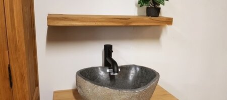 Aus diesem Grund bietet WOOD55 auch kleinere Teak-Badezimmermöbel an. Sehen Sie sich zum Beispiel den 60 cm breiten Waschtisch an, der in den Ausführungen White Wash und Naturel erhältlich ist. Es handelt sich um ein schönes, kompaktes Möbelstück für das Badezimmer, das dennoch ausreichend Stauraum in den Schubladen bietet. In Kombination mit einem Spiegel und einem Waschbecken aus Naturstein entsteht ein harmonisches Ganzes. Es ist möglich, die Füße des Badmöbels abzuschneiden und das Möbelstück aufzuhängen, wodurch der Boden frei bleibt und leicht zu reinigen ist.
