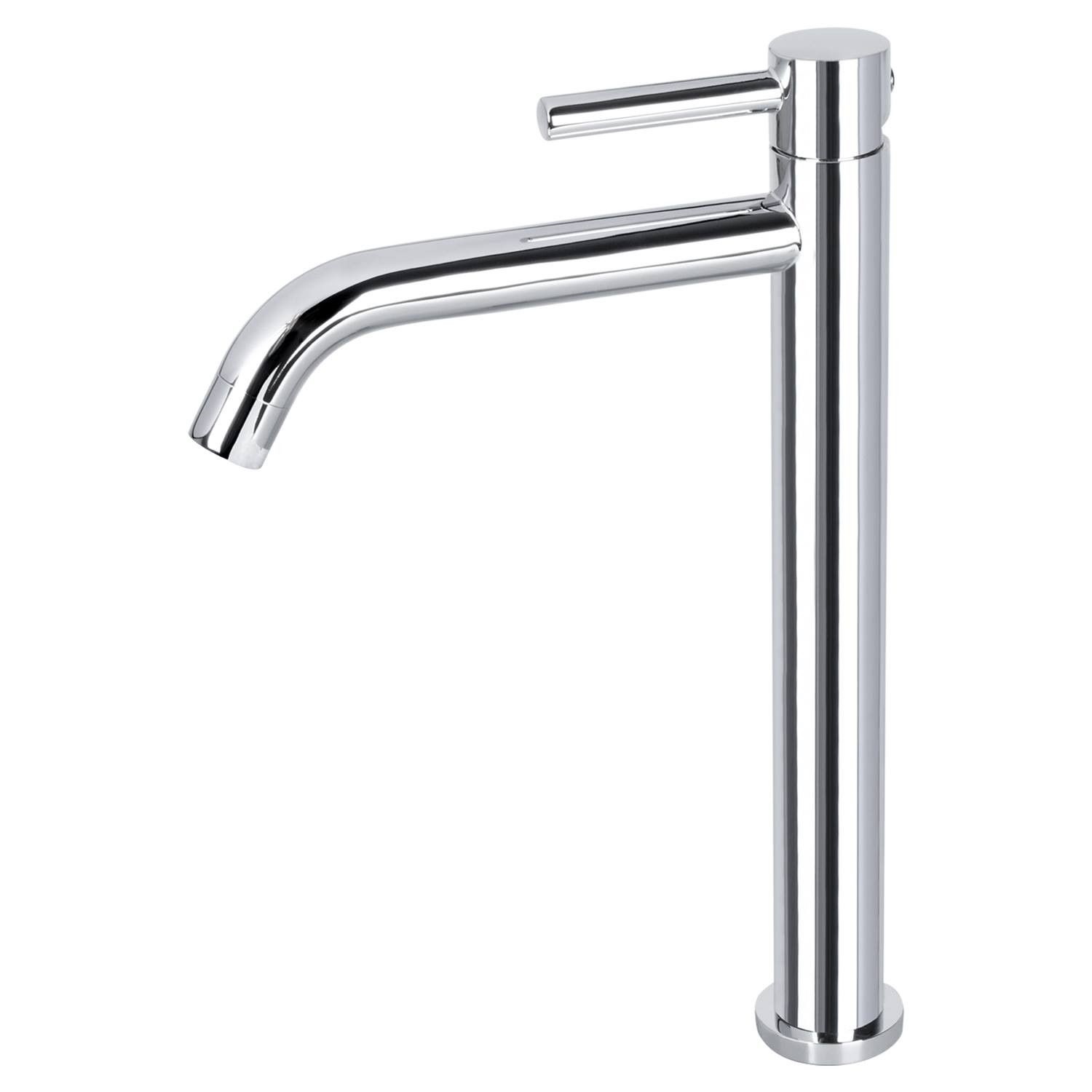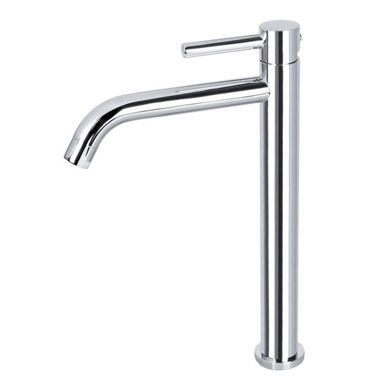 Die stilvollen hohen Design-Mischer für Kalt- und Warmwasser von Differnz sind aus Messing gefertigt und in verschiedenen Farben erhältlich. Diese Variante hat einen gebogenen Auslauf und eine chromfarbene Oberfläche. Der Mischer ist 30,6 cm hoch, 17,4 cm tief und passt gut zu den höheren Aufsatzwaschschalen aus Naturstein. Die Mischfunktion sorgt dafür, dass kaltes und heißes Wasser auf die richtige Temperatur gebracht werden. Der Mischer ist einfach zu bedienen mit einem Hebel, mit dem Sie die Wassertemperatur einstellen können.