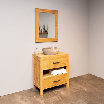 Holz-Badmöbelset 80 cm Natur mit Waschbecken und Spiegel