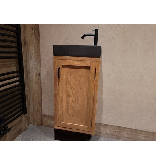 Ein ländlicher Stil in Ihrem WC kann auf viele verschiedene Weisen geschaffen werden. Dieser Stil lässt sich gut mit unseren natürlichen Toilettenmöbeln aus Teakholz kombinieren. Entscheiden Sie sich für klassisch ländlich, oder mögen Sie eher einen robusten Look? Dieser massive Holzikal von Wood55 garantiert für Nachhaltigkeit und hohe Qualität. Dieses Waschbeckenmöbel aus recyceltem Teakholz lässt sich gut mit dem Waschbecken aus Naturstein kombinieren. In der Realität kann die Farbe und Struktur des Holzes abweichen, da es sich um recyceltes Teakholz handelt. Dieser Unterschrank kann sowohl links als auch rechtsdrehend verwendet werden.
