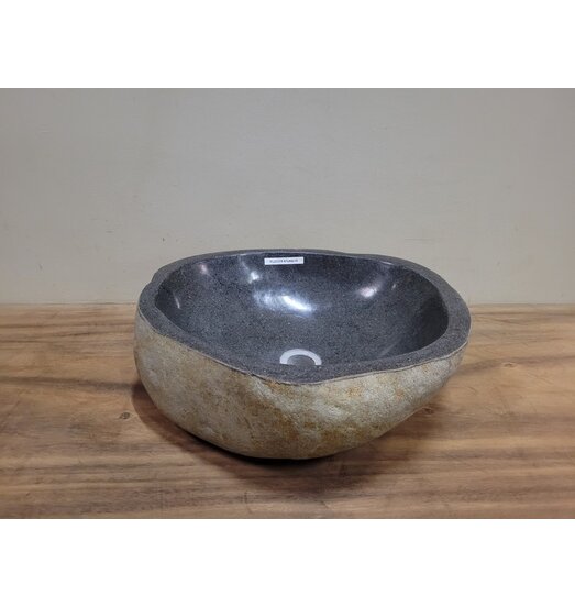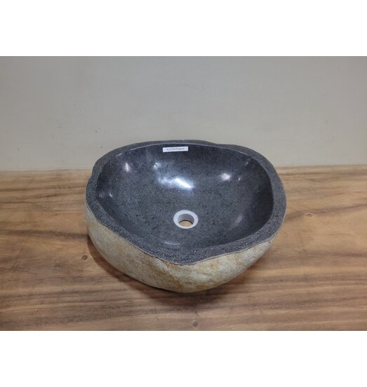 Flussstein-Waschbecken werden aus Flusssteinen hergestellt, die aus einer Art Granit oder Basalt bestehen. Indem die Außenseite unbehandelt bleibt, ist jedes Waschbecken einzigartig.