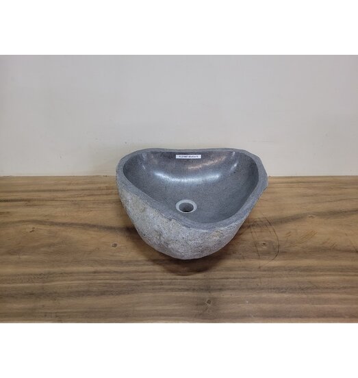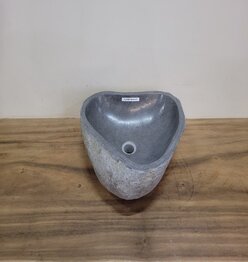Alle unsere Waschbecken aus Naturstein werden aus Flusssteinen aus Indonesien gefertigt, die aus einer Art Granit oder Basalt bestehen. Da die Außenseite unbehandelt bleibt, ist jedes Waschbecken einzigartig.