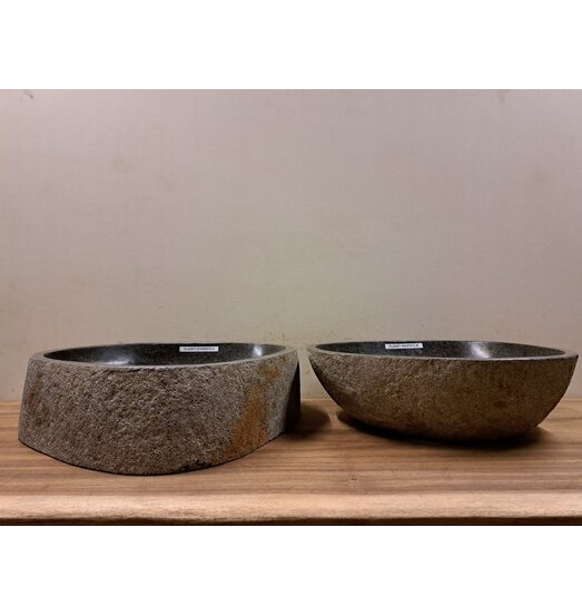Elke natuurstenen waskom heeft zijn eigen uitstraling en karakter door een uniek gevormde structuur, kleur en afmeting. De binnenkant is glad gepolijst.