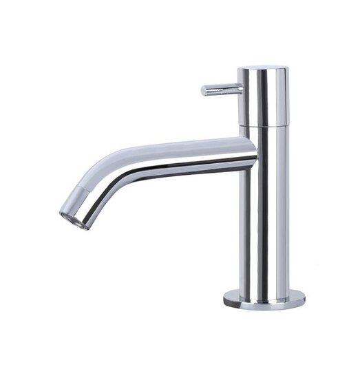 De fraaie design koudwaterkranen van Differnz komen in allerlei kleuren en variaties. De kranen zijn vervaardigd van messing en hebben keramische schijven. De waterhoeveelheid is met een eenvoudige hendel te bedienen. Deze variant heeft een gebogen kraan en is afgewerkt met een mat zwarte finish. De water aansluitslang is niet meegeleverd.
