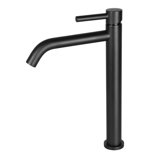 De fraaie hoge design koud- en warmwaterkranen van Differnz zijn van messing en beschikbaar in verschillende kleuren. Deze variant heeft een gebogen uitloop en heeft een mat zwarte kleur. Deze mengkraan is 30,6 cm hoog, 17,4 cm diep en past goed bij de hogere opbouw waskommen van natuursteen. De mengfunctie zorgt er voor dat koud en heet water wordt gemengd tot de juiste temperatuur. De mengkraan is eenvoudig te bedienen met een hendel waarmee je de temperatuur van het water kunt bepalen.