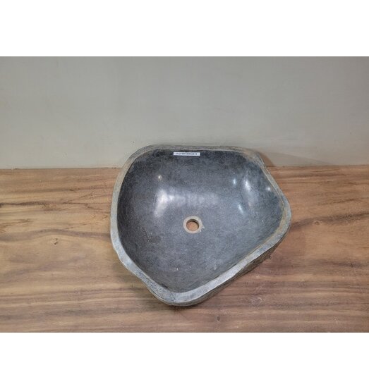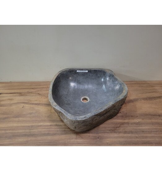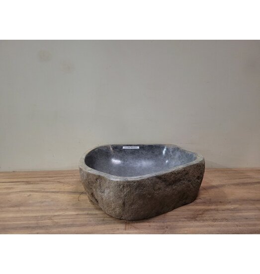 Al onze waskommen van natuursteen worden gemaakt van rivierstenen uit Indonesië, deze bestaan uit een soort graniet of basalt. Door de buitenkant onbewerkt te laten is iedere waskom uniek.