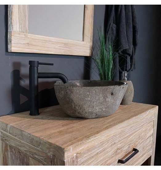 De hoge kwaliteit van Wood55 kenmerkt zich ook in de waskom. Deze is gemaakt van natuursteen en is hierdoor extra stevig.