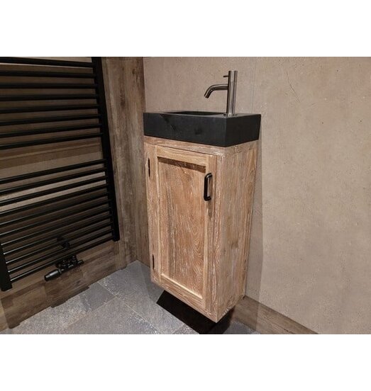 Een landelijke stijl in uw toilet kan op veel verschillende manieren gecreëerd worden. Deze stijl is goed te combineren met onze natuurlijke toiletmeubelen van teakhout, ga je bijvoorbeeld voor klassiek landelijk, of ben je meer van een stoere look? Dit massief houten toiletkast van Wood55 staat garant voor duurzaamheid & hoogwaardig kwaliteit. Dit fonteinmeubel van gerecycled teak hout laat zich goed combineren met de natuurstenen wasbak. In werkelijkheid kan de kleur en structuur van het hout afwijken aangezien het een gerecycled teakhout. Dit toiletkastje is zowel links als rechts draaiend te gebruiken.