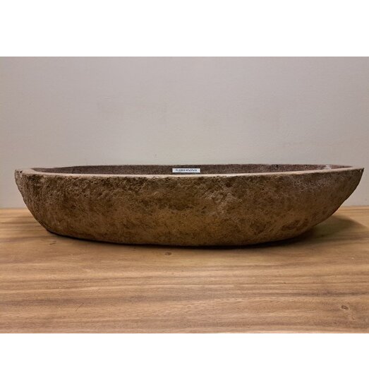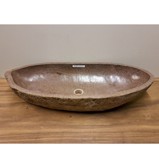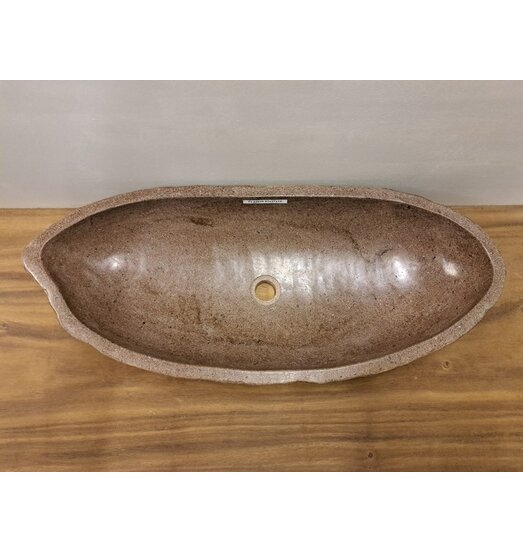 Elke natuurstenen waskom heeft zijn eigen uitstraling en karakter door een uniek gevormde structuur, kleur en afmeting. De binnenkant is glad gepolijst.
