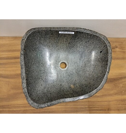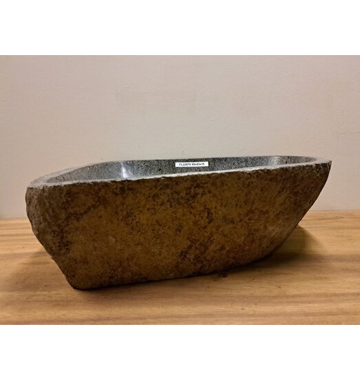 Elke natuurstenen waskom heeft zijn eigen uitstraling en karakter door een uniek gevormde structuur, kleur en afmeting. De binnenkant is glad gepolijst.