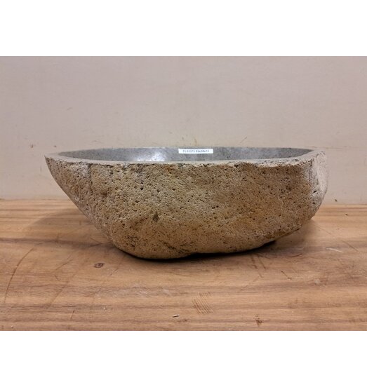 Elke natuurstenen waskom heeft zijn eigen uitstraling en karakter door een uniek gevormde structuur, kleur en afmeting. De binnenkant is glad gepolijst.