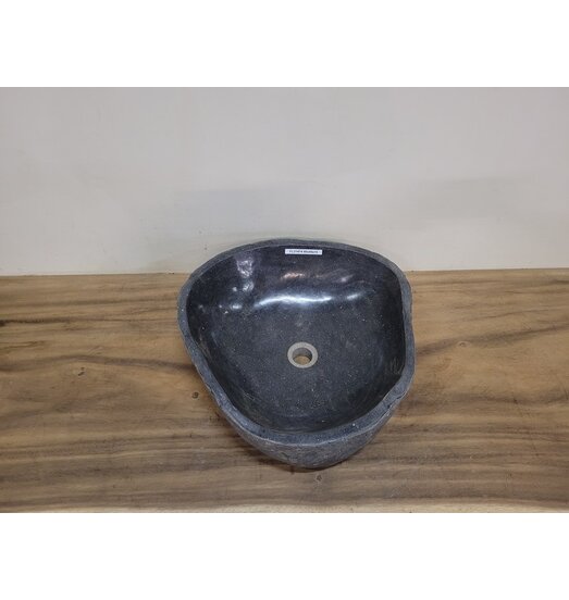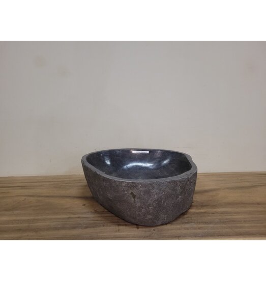 Al onze waskommen van natuursteen worden gemaakt van rivierstenen uit Indonesië, deze bestaan uit een soort graniet of basalt. Door de buitenkant onbewerkt te laten is iedere waskom uniek.