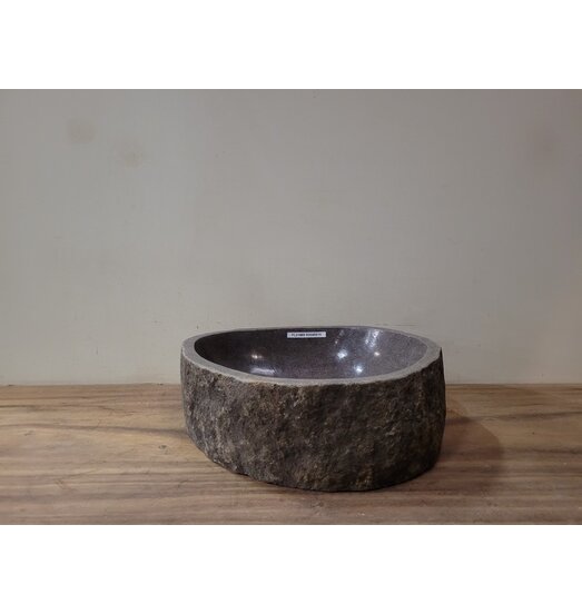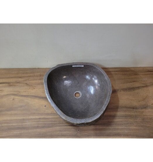 Al onze waskommen van natuursteen worden gemaakt van rivierstenen uit Indonesië, deze bestaan uit een soort graniet of basalt. Door de buitenkant onbewerkt te laten is iedere waskom uniek.