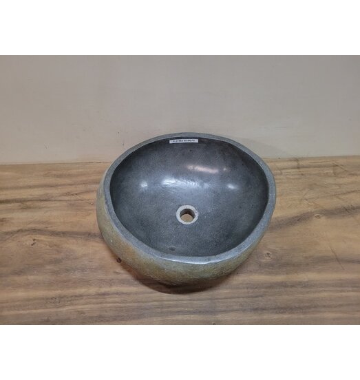 Al onze waskommen van natuursteen worden gemaakt van rivierstenen uit Indonesië, deze bestaan uit een soort graniet of basalt. Door de buitenkant onbewerkt te laten is iedere waskom uniek.
