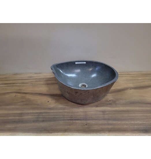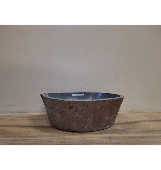 Elke natuurstenen waskom heeft zijn eigen uitstraling en karakter door een uniek gevormde structuur, kleur en afmeting. De binnenkant is glad gepolijst.