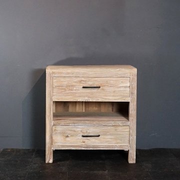 De bescherming van het milieu is erg belangrijk voor WOOD55. Daarom worden alle hoogwaardige badkamermeubelen in ons uitgebreide assortiment gemaakt van gerecycled teakhout, afkomstig uit oude huizen, gebouwen en andere plaatsen waar het hout is gebruikt. Oud teakhout wordt gerecycled. Dit betekent: er hoeft geen nieuwe boom gekapt te worden voor onze badkamermeubels. Voor onze badkamermeubels van dit massieve teakhout worden grondstoffen gebruikt, die traditioneel met de hand worden vervaardigd door onze eigen producenten. Het gebruikte hout wordt opnieuw geschaafd en oude gaten worden opgevuld met stukken hout waardoor het geheel een prachtig karakteristieke uitstraling krijgt. Hierdoor is elk badkamermeubel en de hoogwaardige wastafel echt uniek.