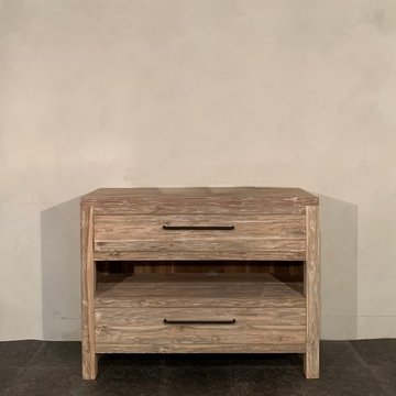 Wood55 levert diverse badmeubelsets welke bestaan uit een gerecycled teak badmeubel/onderkast, een spiegel en een natuurstenen waskom. Meer ruimte nodig? Neem een teak badmeubelset met een hoge badkamerkast, hierdoor creëert u meer opbergruimte in uw badkamer en blijft deze altijd net opgeruimd.