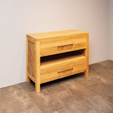 Het teakhout van onze badkamermeubelen is afkomstig uit Indonesië, het is van nature olieachtig en heeft daardoor automatisch een waterafstotende werking. Dit maakt het perfect voor plaatsen waar meubels in contact kunnen komen met water zoals in de badkamer. Het is uiterst onderhoudsvriendelijk en kan gemakkelijk worden gereinigd met water en zachte zeep.