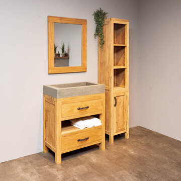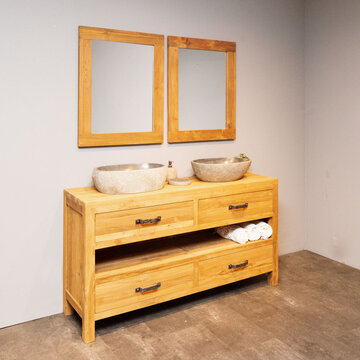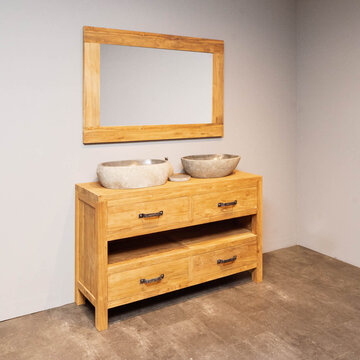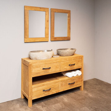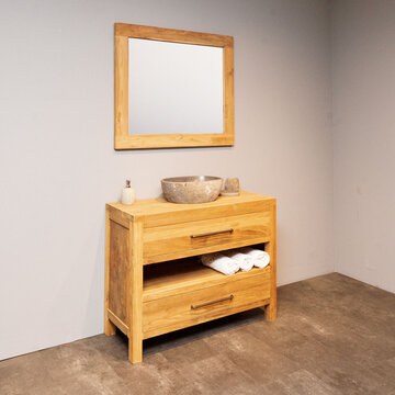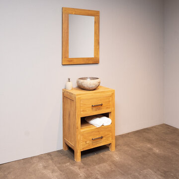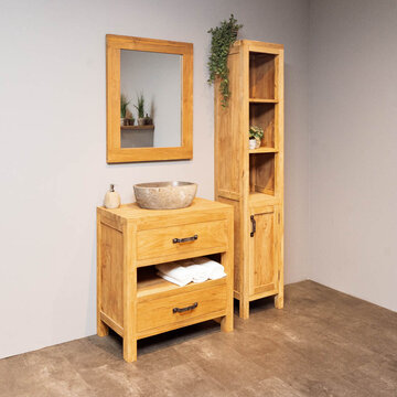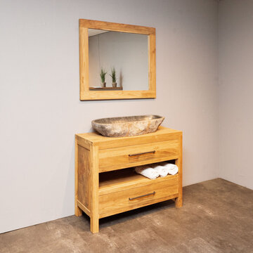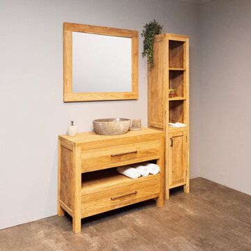 Ontdek de mooiste teak badkamersets van WOOD55. Bekijk op deze pagina ons complete aanbod met badmeubelsets gemaakt van de mooiste materialen en opvallend door hun unieke uitstraling. Door de rustieke sfeer die deze sets ademen toveren we uw badkamer om tot een heerlijke wellness waar u volledig tot rust kunt komen. Welke set spreekt u het meest aan? Bekijk de verschillende mogelijkheden die wij aanbieden, kies de gewenste set en bestel hem gemakkelijk en snel online. Wij bieden een snelle levering in 2 tot 5 werkdagen. Daarnaast wordt bij besteding van 500,- of meer uw producten gratis bezorgd. Behoefte aan meer informatie over ons aanbod? Lees dan snel verder.