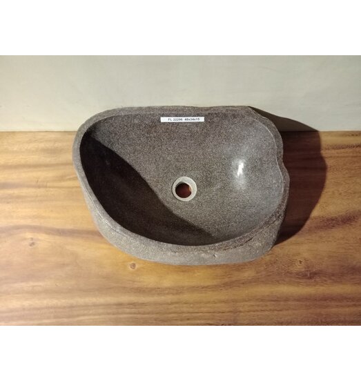 Elke natuurstenen waskom heeft zijn eigen uitstraling en karakter door een uniek gevormde structuur, kleur en afmeting. De binnenkant is glad gepolijst.